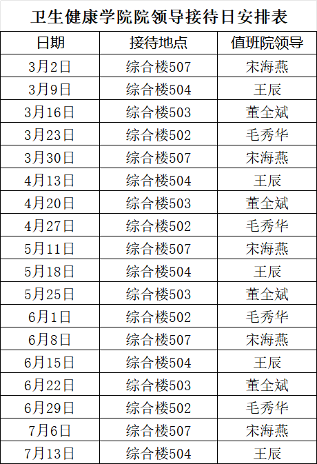 辅导员接待日:卫生健康学院全体学生