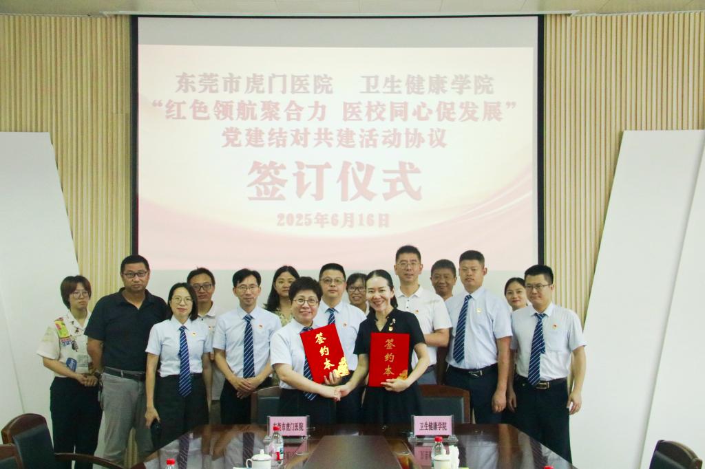 为强化党建引领作用,推动医教深度融合,6月16日上午,东莞市虎门医院党委与卫生健康学院党总支齐聚卫健院举行题为“红色领航聚合力 医校同心促发展”的党建结对共建活动协议签订仪式。我院党总支书记、院长宋海燕以及东莞市虎门医院党委书记杨伟琪等双方党组织领导、相关人员参加了此次活动,活动由我院党总支副书记王辰主持。
