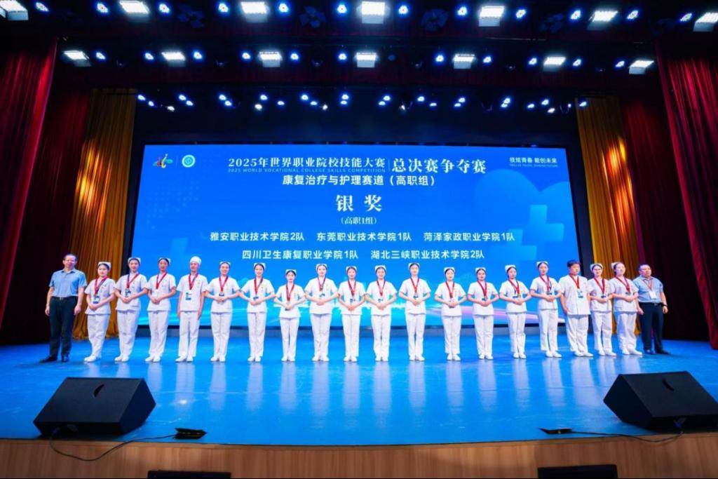 2025年8月30日,由教育部、国家发展改革委等33个部门联合主办的2025年世界职业院校技能大赛总决赛争夺赛康复治疗与护理赛道(高职组)在苏州卫生职业技术学院圆满落幕。来自全国30个省、自治区、直辖市的137所高职院校,共170支代表队、645名选手同台竞技。我院护理专业学生罗子昵、曾碧琳、叶文如、陈俊昽,凭借扎实的专业功底和出色的临场应变能力,在激烈角逐中脱颖而出,荣获该赛道银奖。
