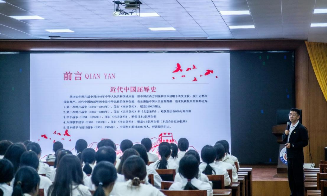 为弘扬伟大抗战精神,厚植青年学生家国情怀,10月22日,我院党总支副书记王辰以“不忘国耻 自强不息”为主题主讲思政第一课,约65名青马学员参与学习。