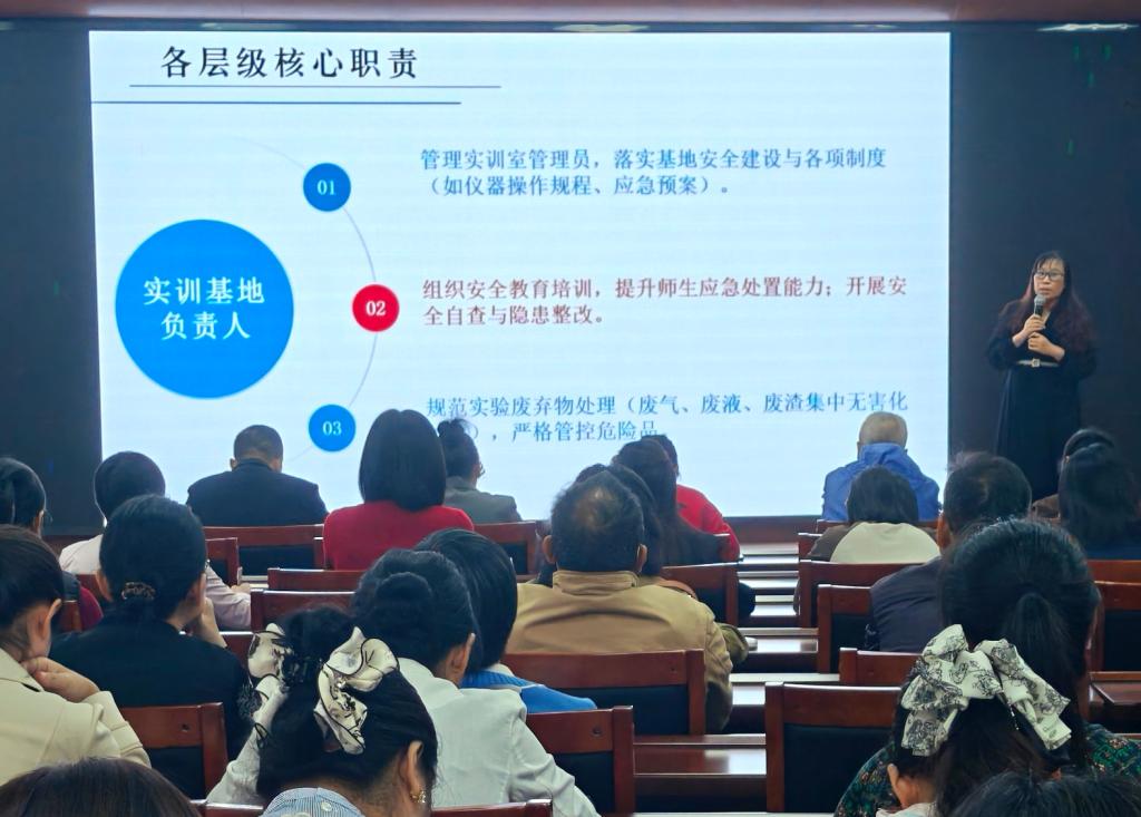 为全面强化我院实训(验)室安全管理,落实学校、学院、实验实训室三级联动的安全责任体系,10月22日下午,学院组织召开全体教师实验实训室安全责任制专题学习会。会议由毛秀华副院长主持,全体教师参加。