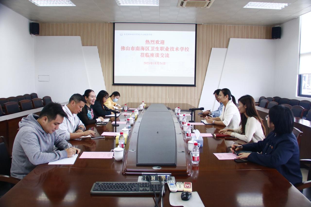 2025年10月24日上午,佛山市南海区卫生职业技术学校副校长王洋一行4人莅临我院,就深化校际合作开展交流活动。