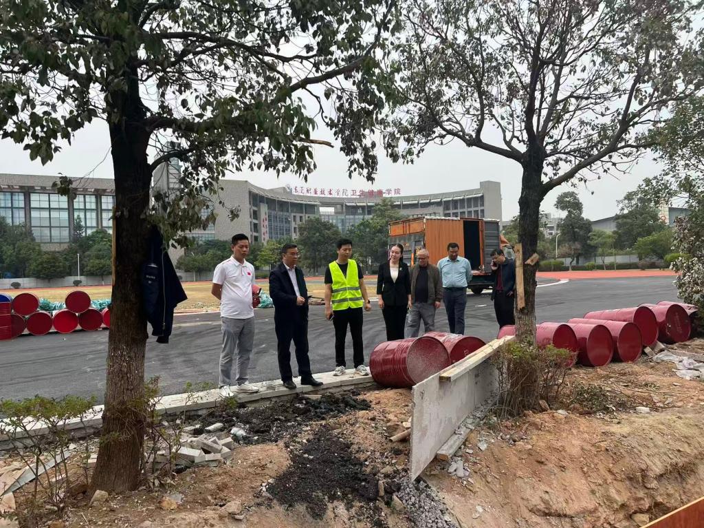 检查组一行首先深入卫健院跑道建设现场,实地检查工程进展与安全管理情况。杨洋部长仔细检查施工围挡的规范性、安全警示标识的清晰性等细节,详细询问施工负责人关于工程进度安排、每日安全巡查制度落实等核心问题。他强调,校园在建工程安全是校园稳定的重要一环,施工单位必须压实安全生产主体责任,严格执行安全操作规程,强化施工现场动态管控,对隐患“零容忍”、立行立改,坚决防范安全事故发生。