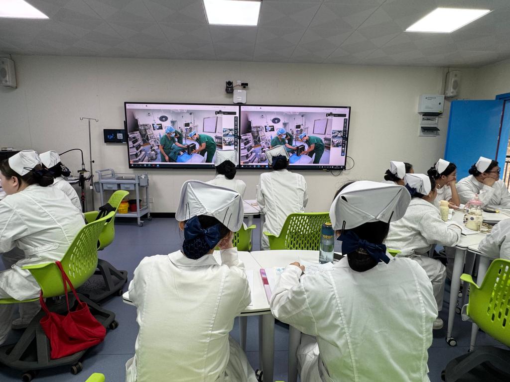12月5日上午,学院外科护理教学团队与东莞市南城医院手术室联合开展了本学期第四次线上直播教学。课程由张馥绯、严彩君老师组织指导,南城医院阮舜主任、王凤璋老师带领护理团队共同实施,24级护理4班44名学生通过高清直播系统全程参与学习。