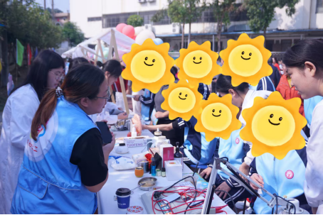 12月5日,范荧老师和卢俏茵老师带领学生志愿者赴东莞市残疾人托养中心开展爱心志愿党建服务,以实际行动践行社会责任,传递温暖关怀,当天服务约200人次。本次义诊团队为到场的残疾人朋友、家属及工作人员提供了多项中医特色服务:血压测量、中医耳穴压豆、传统艾灸温通、火龙罐、红外烤灯、中频理疗仪体验、养生茶饮。