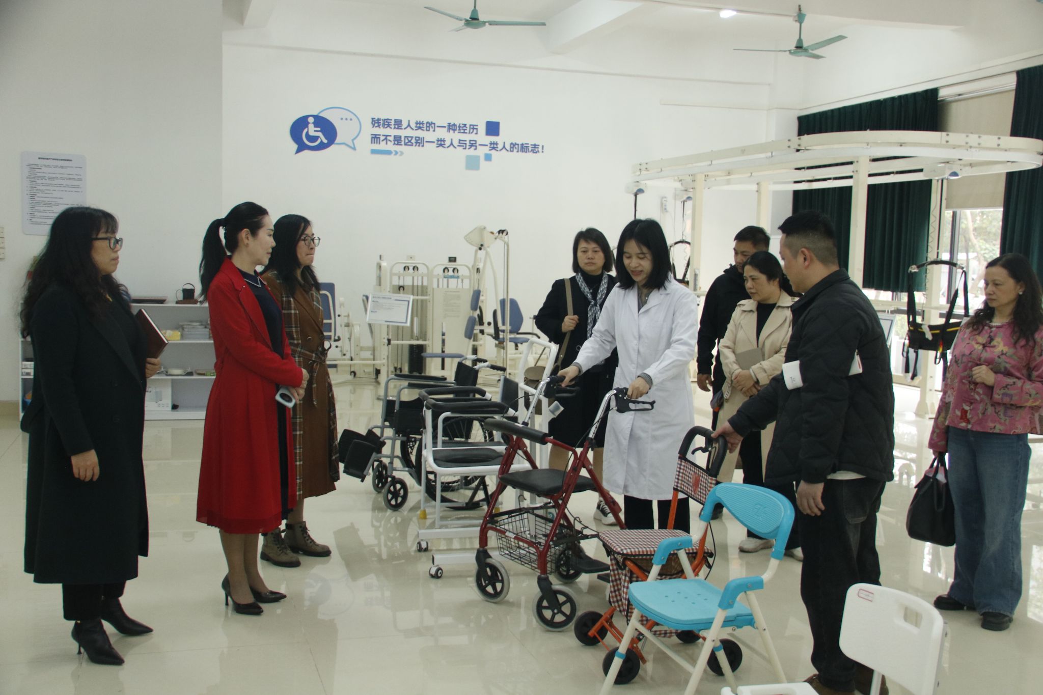 会后,在宋海燕院长等人的陪同下,一行人先后前往我院的护理虚拟仿真实训室、康复治疗实训室及康复辅助器具展厅进行实地参观。