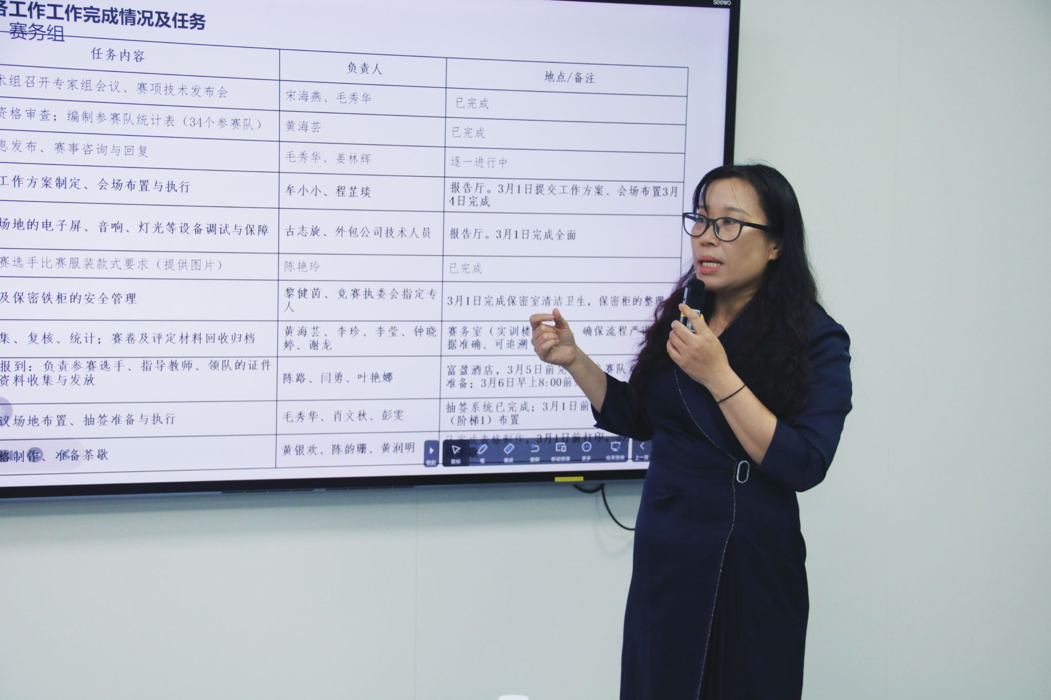 会上,毛秀华副院长首先汇报了我院承办2025-2026学年广东省职业院校学生专业技能大赛护理技能赛项(高职组)的前期推进情况,对后续任务推进的关键时间节点、核心工作任务进行系统性梳理和周密部署,为赛事顺利举办筑牢基础。