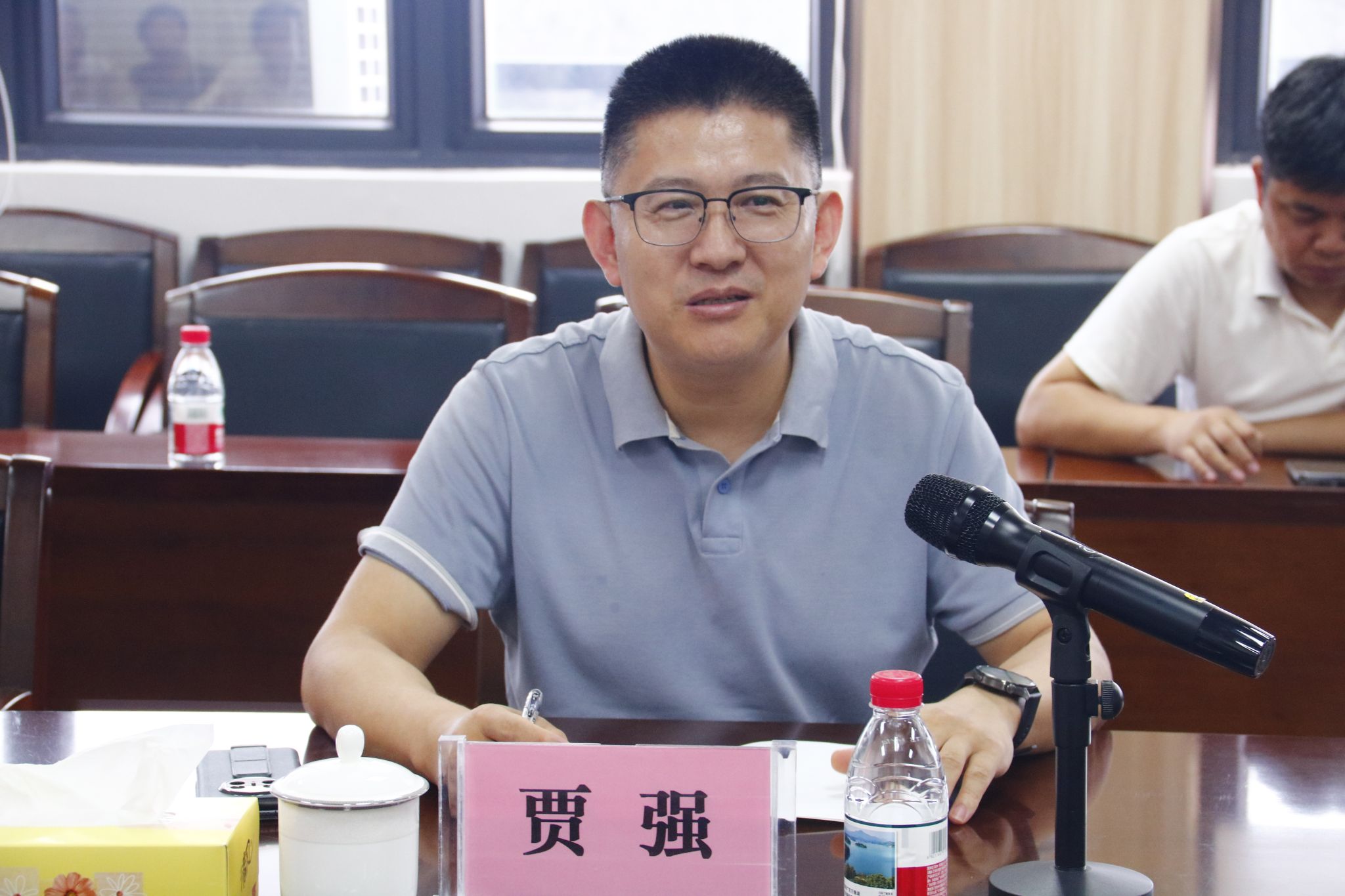 会后,贾强副院长在学院领导班子成员的陪同下,参观了学院实训室、食堂等区域。