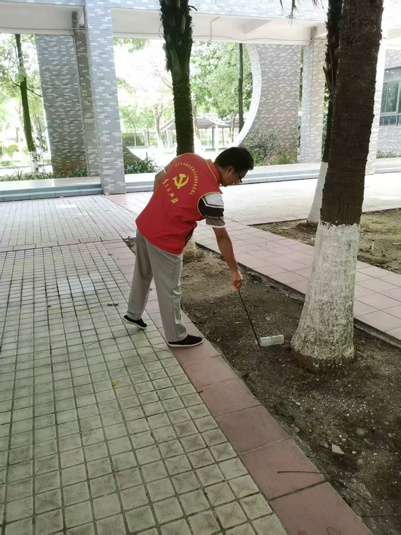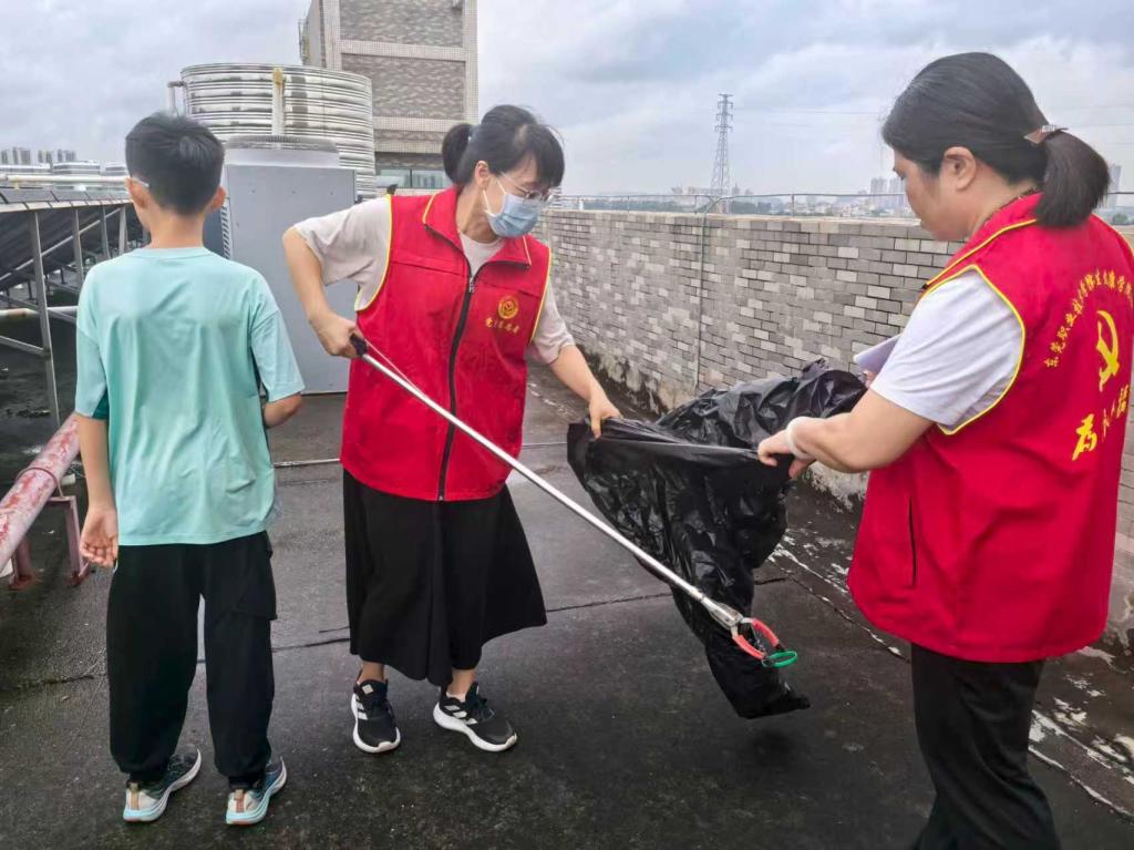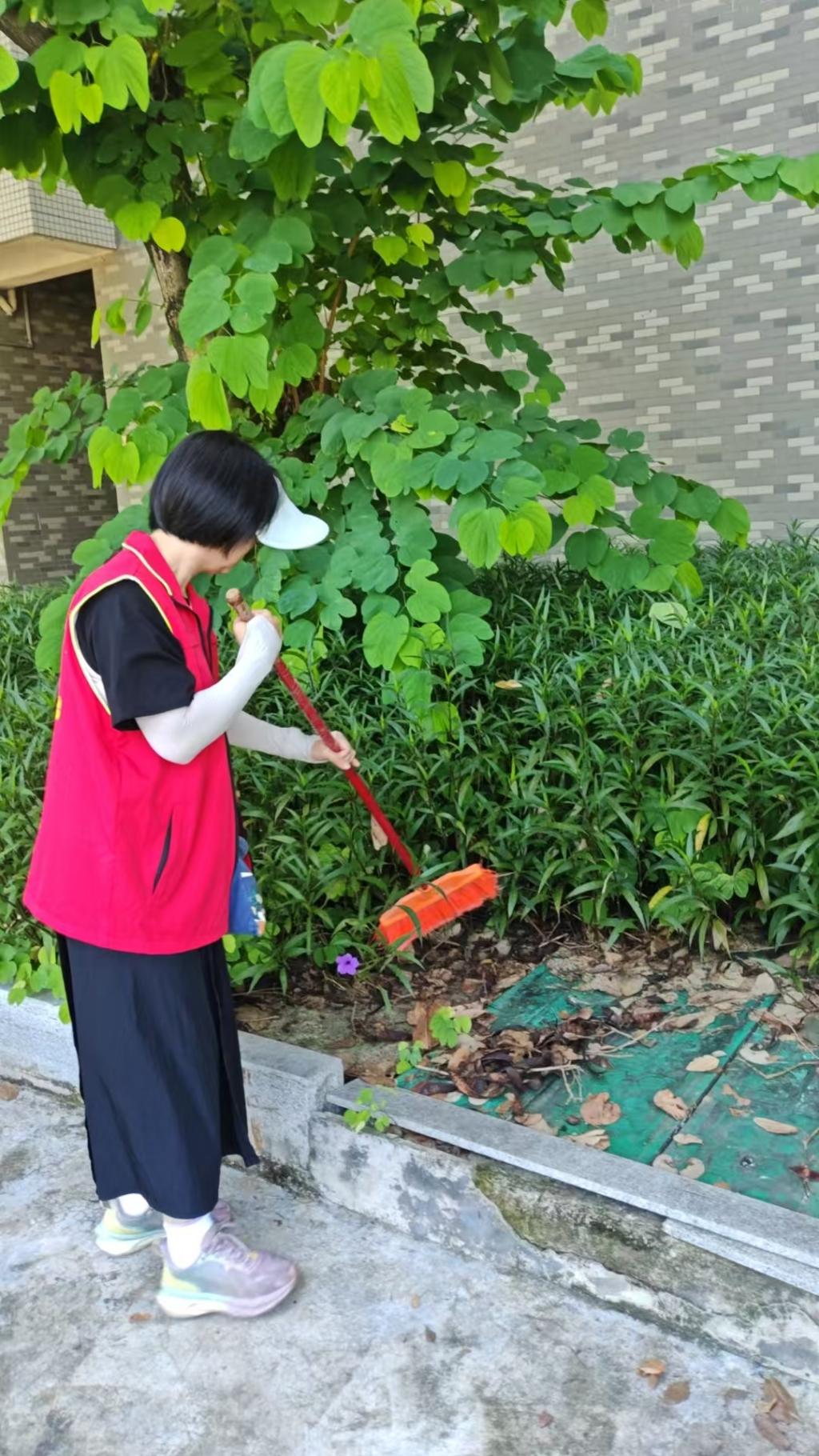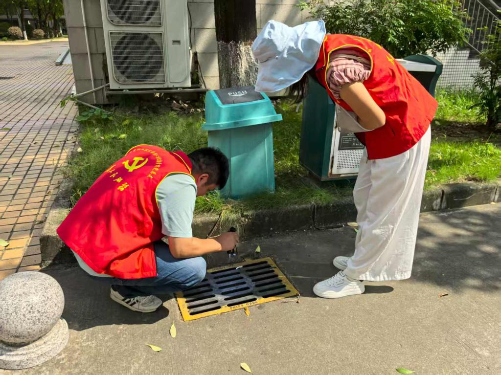 在巡查过程中,党员志愿者们严格按照学校道滘校区预防登革热、基孔肯雅热校园巡查的要求,对校园的教学、办公、生活等室内外区域进行了全面而细致的排查。无论是绿化草丛、下水道,还是路面、水池等角落,党员志愿者们都逐一检查是否有垃圾未清理、是否存在积水、是否有蚊虫飞出、是否有蜗牛壳等情况,并及时记录和整改。党员志愿者们还及时对绿化垃圾和生活垃圾进行了清运,确保校园环境整洁卫生,减少了蚊虫滋生的可能。