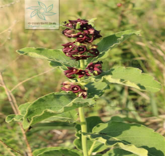 直立多年生草本,高达50厘米;根须状,有香气。叶卵形或卵状长圆形,长5-8厘米,宽3-4厘米,顶端渐尖或急尖,基部圆形,两面均被有白色绒毛,特别以叶背及脉上为密;侧脉6-7对。伞形状聚伞花序,无总花梗,生在茎的四周,着花8-10朵;花深紫色,直径约10毫米;花萼外面有绒毛,内面基部有小腺体5个;花冠辐状,外面有短柔毛,并具缘毛;副花冠5裂,裂片盾状,圆形,与合蕊柱等长,花药顶端具1圆形的膜片;花粉块每室1个,下垂,长圆状膨胀;柱头扁平。蓇葖单生,向端部渐尖,基部钝形,中间膨大,长9厘米,直径5-10毫米;种子扁平;种毛白色,长约3厘米。花期4-8月,果期6-8月。
