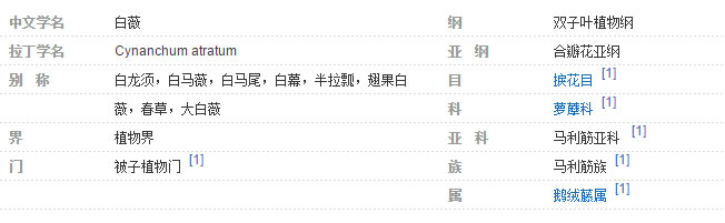 白薇(本草经)薇草(名医别录);知微老(药谱);老瓜瓢根(辽宁);山烟根子(北京);百荡草(广西);白马薇、白前(江苏);老君须(四川)图版123