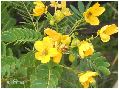 黄槐(学名:Cassiasurattensis (Burm. f.) H. S. Irwin et Barneby)为豆科,决明属植物。落叶小乔木或灌木状。羽状复叶,倒卵状椭圆形,先端圆。基部稍偏斜;叶轴下部2或3对小叶之间有一棒状腺体。花大,鲜黄色,种子间有时略缢缩。几乎全年开花,但主要集中在3~12月。产亚洲热带至大洋洲。喜光,要求深厚而排水良好的土壤。