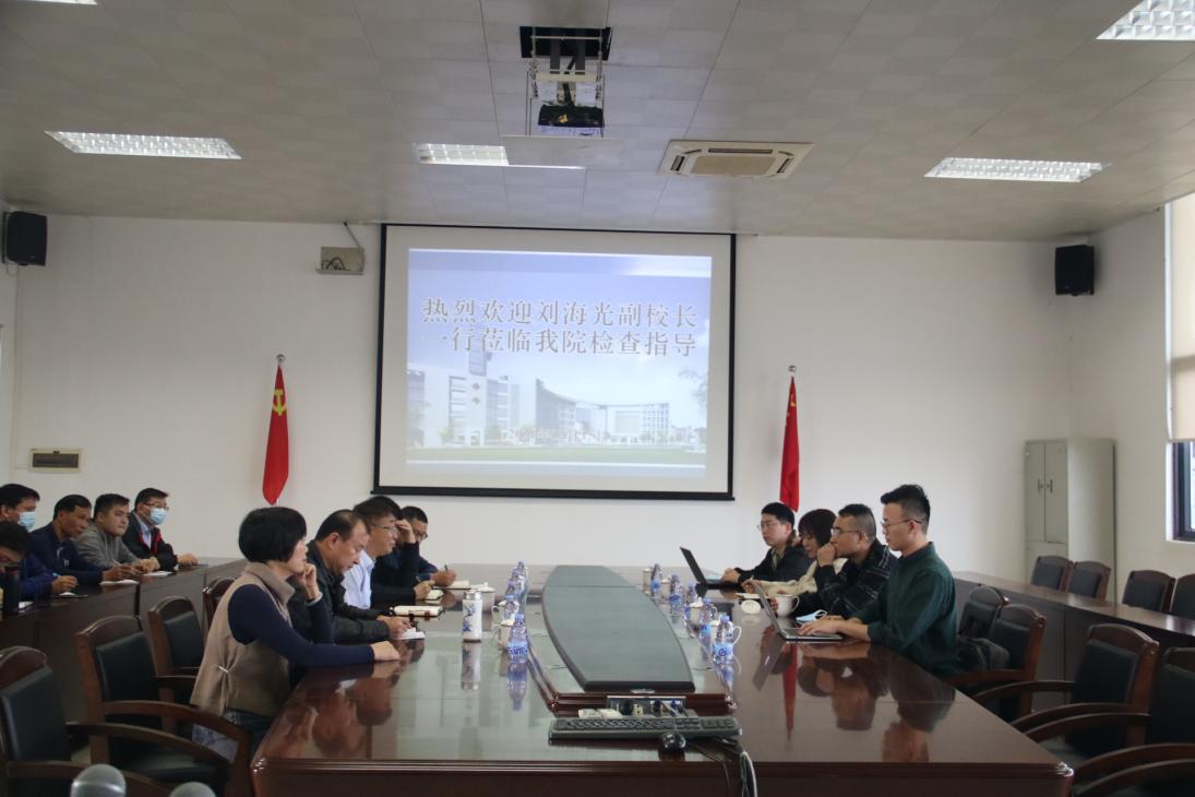 12月15日上午,学校副校长刘海光带领国际交流学院院长一行到我院调研指导工作,我院领导班子全体成员及各办公室、专业负责人参加了调研,并陪同参观学院。